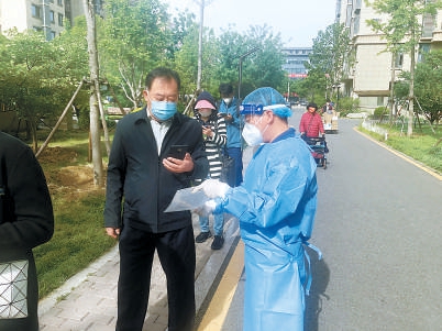 临近上午10点钟,楼院里排队做核酸检测的居民逐渐少了,现场社区工作人员和医护人员抽调人力,马不停蹄地开始下一项工作——入户核酸检测。有的居民年岁大了,出门腿脚不便,还有个别居民因手术后不能下楼,所以社区安排入户,统一解决这一难题。